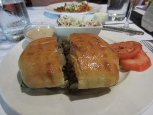 When it came time for dinner, I was intrigued to try to Bison Burger served with Mushrooms, Onions, White Cheddar Cheese, Worcestershire Mayonnaise and Coleslaw.