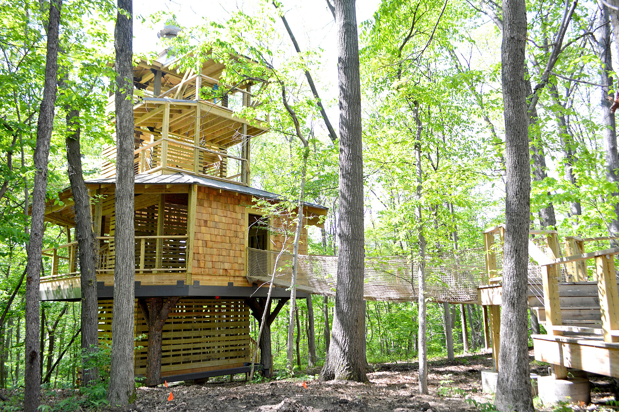 Surrounding the 45-foot-tall treehouse are experience areas that will allow visitors of all ages to investigate nature and its resources, dig in a re-created archaeology site, build like Hoosiers of the past, create art and fill the forest with music.