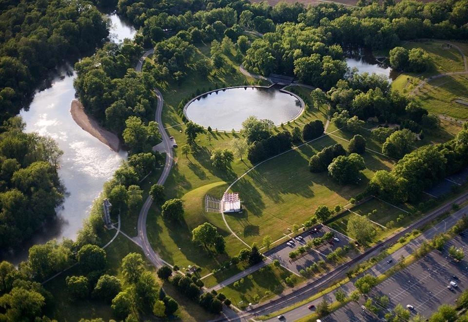 Mill Race Park is an 85-acre riverfront park, designed by Michael Van Valkenburgh and located in downtown Columbus. The park includes an observation tower, covered bridge, walking trails, fishing at two lakes, picnic shelters, playground equipment, and more. The park is free year round. Read More.
