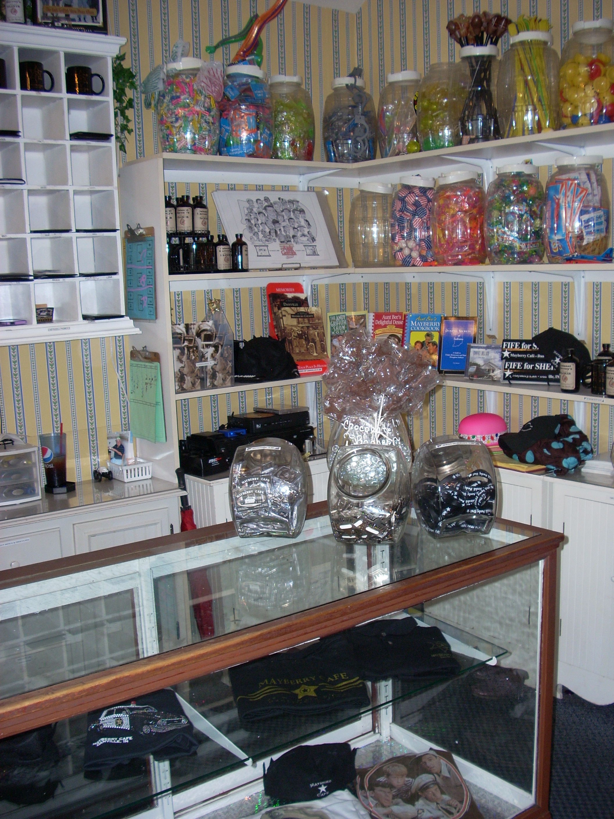 Mayberry Café's interior has an upright piano as Andy might have played.