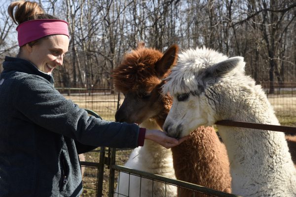 Elmore takes care of the alpacas at White Violet Center for Eco-Justice, one of the ministries of the Sisters of Providence. The mission of the Center is to “take care of the earth,” explains Mary Riley, Marketing Manager for Mission Advancement. Opened in 1996, the sisters utilize organic practices and teach people about growing food and caring for the planet.