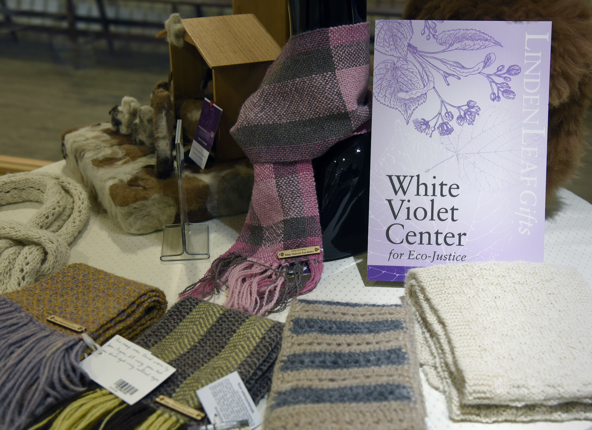 Visit with the alpacas – animals easy on the earth. They have beautiful fleece, which is spun into yarn and sold in the Farm Store. The natural colors of the fibers are gorgeous in themselves. Also find handwoven items in the Farm Store and Linden Leaf Gifts, some dyed with natural dyes. Greet Basilide and Jean, Olivia and Tracy and Wynne – familiar names to the sisters.