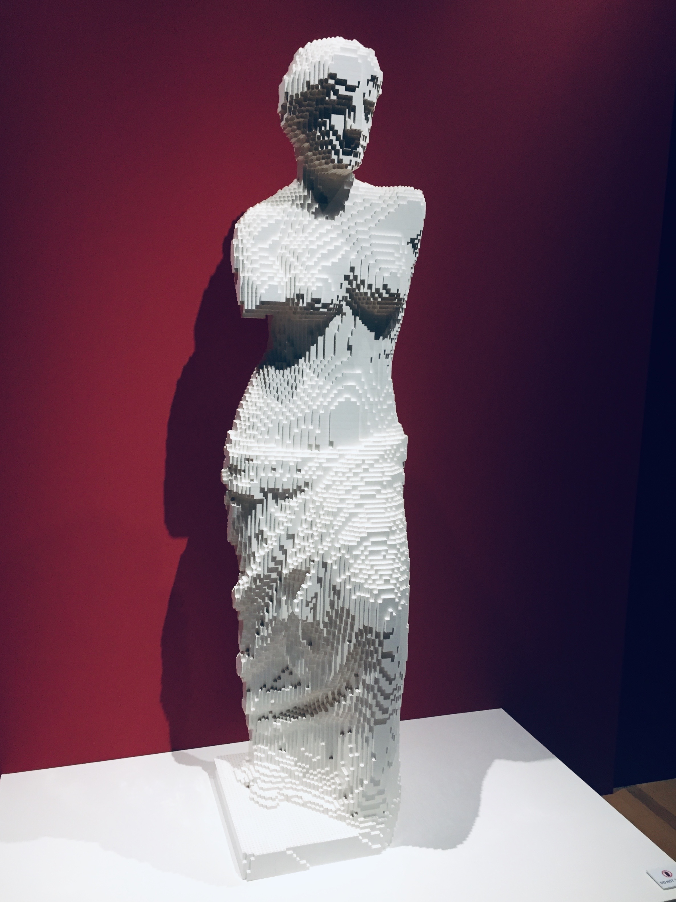 Here, you’ll marvel at full-sized reinterpreted masterworks like the Mona Lisa, Venus de Milo and Van Gogh’s Starry Night, along with incredibly life-like human figures and other clever pieces. Yes, all composed of LEGOs.