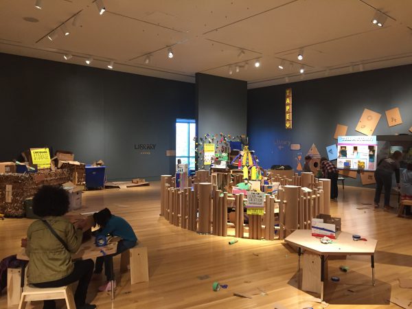 Located in a 3,000 square-foot corner of the third floor, this wide-open innovative space is fully stocked with cardboard boxes and scraps of all shapes and sizes just waiting to be repurposed in new ways. Little (and big) visitors can find safety scissors, tape, crayons, aprons, and a variety of suggestions and ideas on hand to aid in their construction projects.
