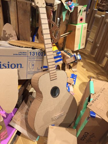 When the cardboard creations are complete, they can either be taken home or left behind to display in a centerpiece assemblage in the middle of the room.
