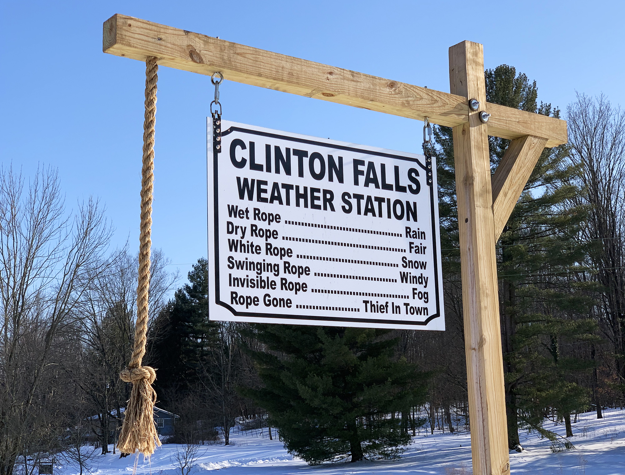 Clinton Falls is a great place to check the weather. Stop by the waterfalls that wander through this historic beauty spot. (Please, don’t steal the rope!)