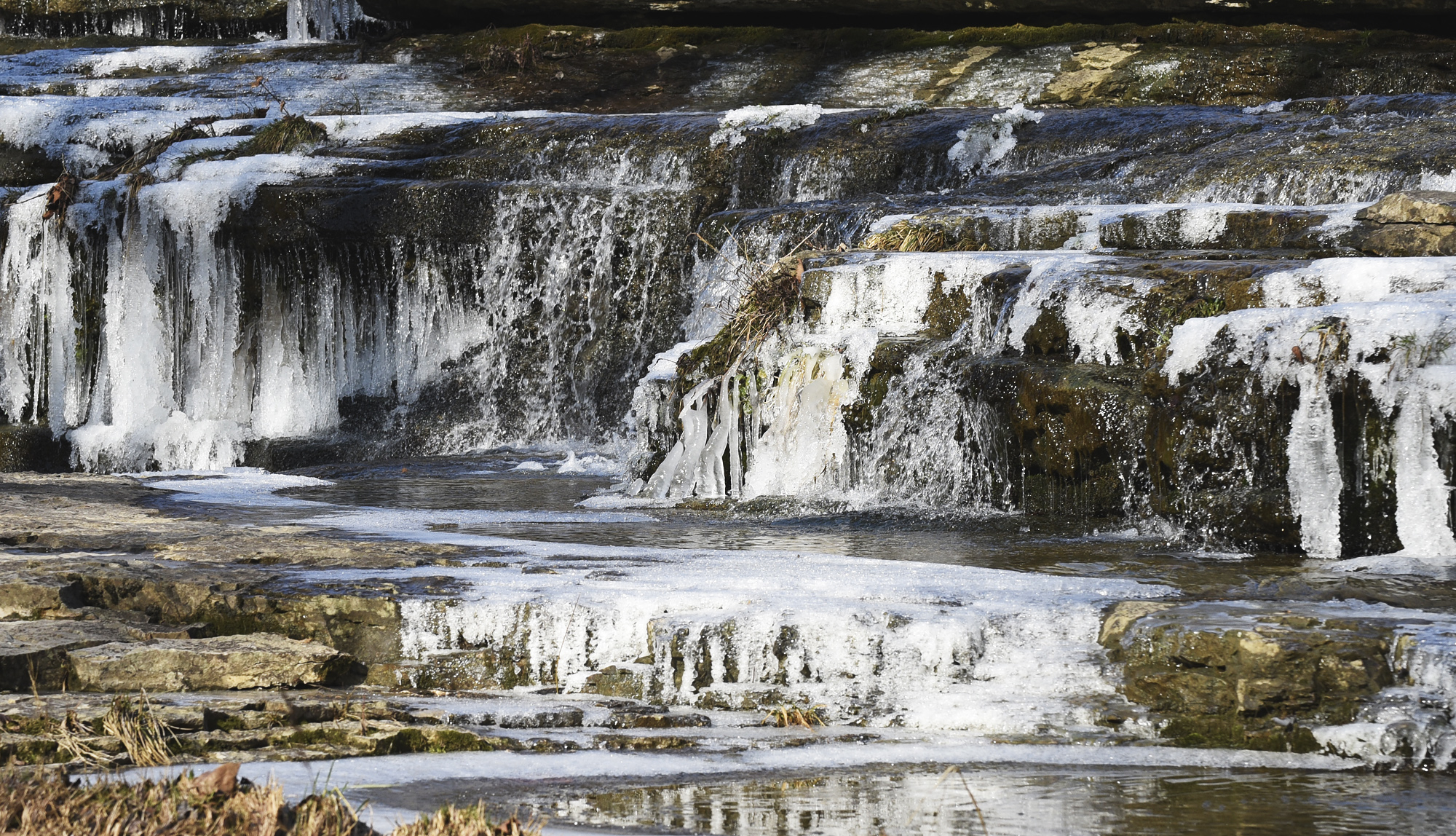 Cataract Falls is a great place to start a day of adventure. All seasons have their own beauty here, especially in Winter. Ice covers the Upper and Lower Falls. Streams are patchworks of open water and sheets of ice. Overlooks are accessible to all.