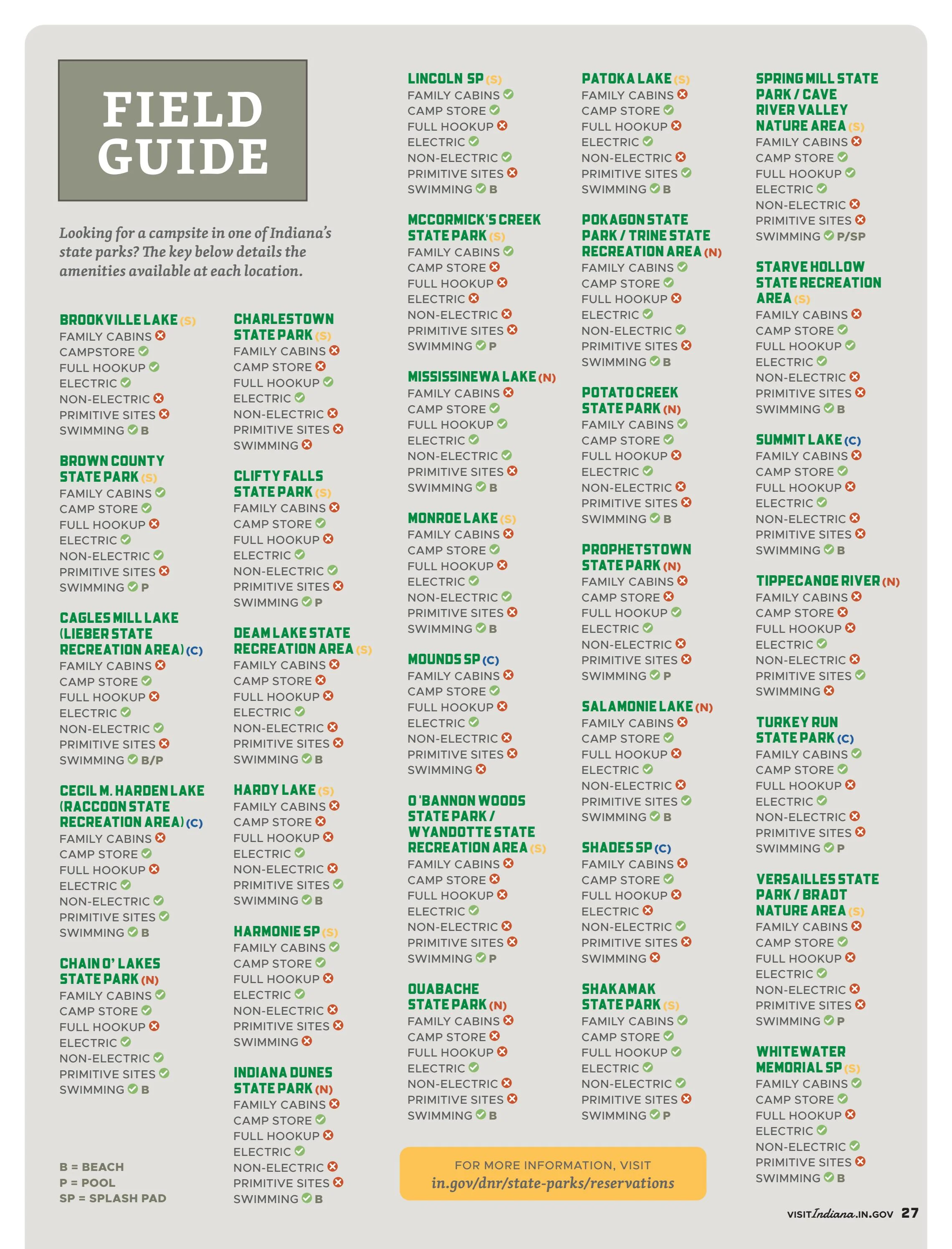Back to Top of ListWant to go camping in Indiana? Check out our one-page field guide to find the best campground for you!